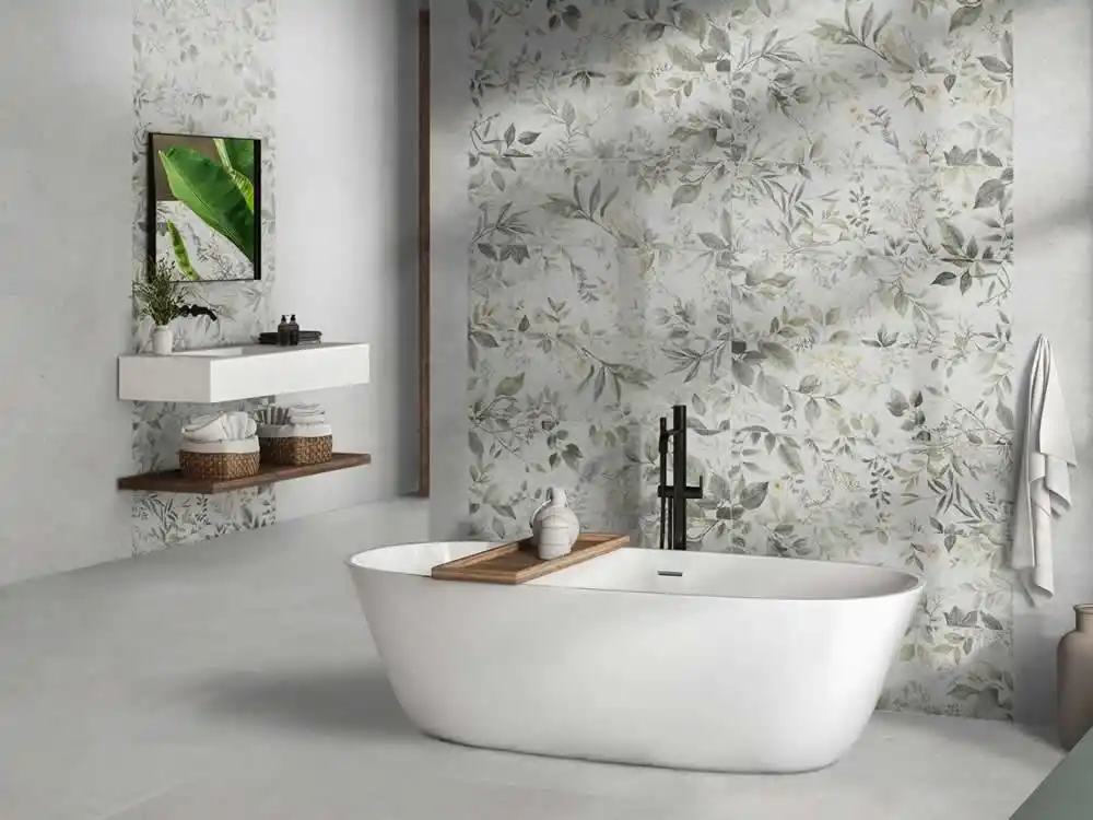 Η επιφάνεια με διακριτικό φυτικό μοτίβο σε απαλούς, ουδέτερους τόνους προσδίδει βάθος και χαρακτήρα, καθιστώντας τα ιδανικά για μπάνια, αλλά και για κάθε εσωτερικό χώρο που θέλει να ξεχωρίζει. Το ματ φινίρισμα ενισχύει τη φυσικότητα του υλικού, ενώ παράλληλα προσφέρει ευχάριστη υφή και μειωμένη αντανάκλαση φωτός.