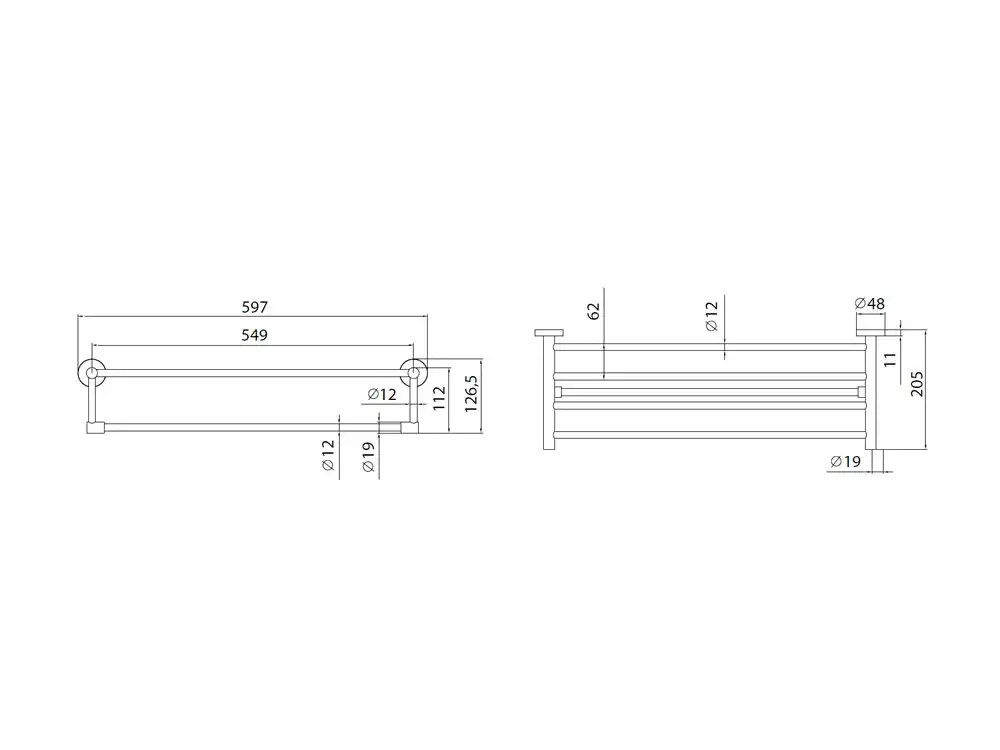 Ραφιέρα πετσετών επιτοίχιας τοποθέτησης Artemis Gun Metal A0150345. Κατασκευή από Ανοξείδωτο Χάλυβα SS304 AISY 18/10.