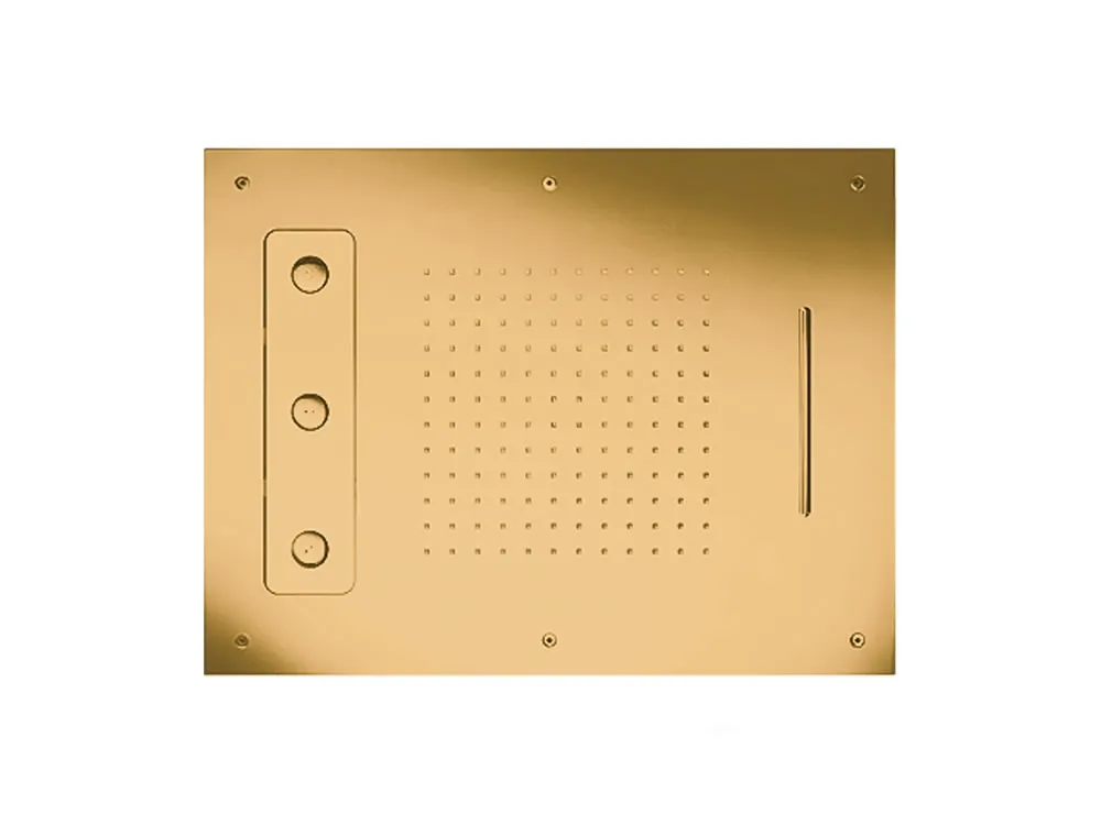Εντοιχιζόμενη Κεφαλή ντουζ ορθογώνιας διατομής Almar E044189-211 63 x 48 cm Gold Brushed. Κατασκευή από Ανοξείδωτο Χάλυβα με 3 Λειτουργίες ροής.