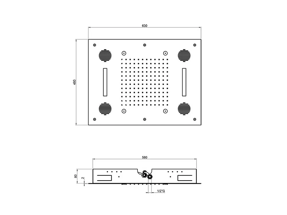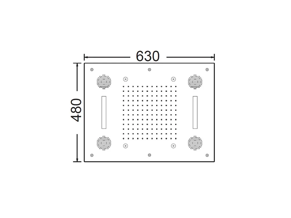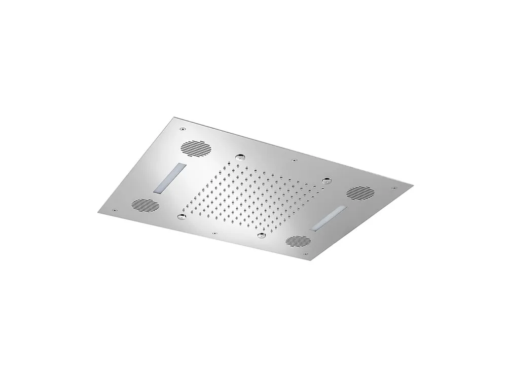 Εντοιχιζόμενη Κεφαλή ντουζ ορθογώνιας διατομής Almar E044211-111 63 x 48 cm Chrome. Κατασκευή από Ανοξείδωτο Χάλυβα με 2 Λειτουργίες και Χρωματοθεραπεία.