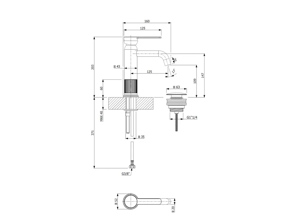 Μπαταρία Νιπτήρα Armando Vicario Lumiere Black Brushed 516010-410. Τοποθέτηση στον Νιπτήρα. Κατάλληλη για τοποθέτηση σε Νιπτήρες.