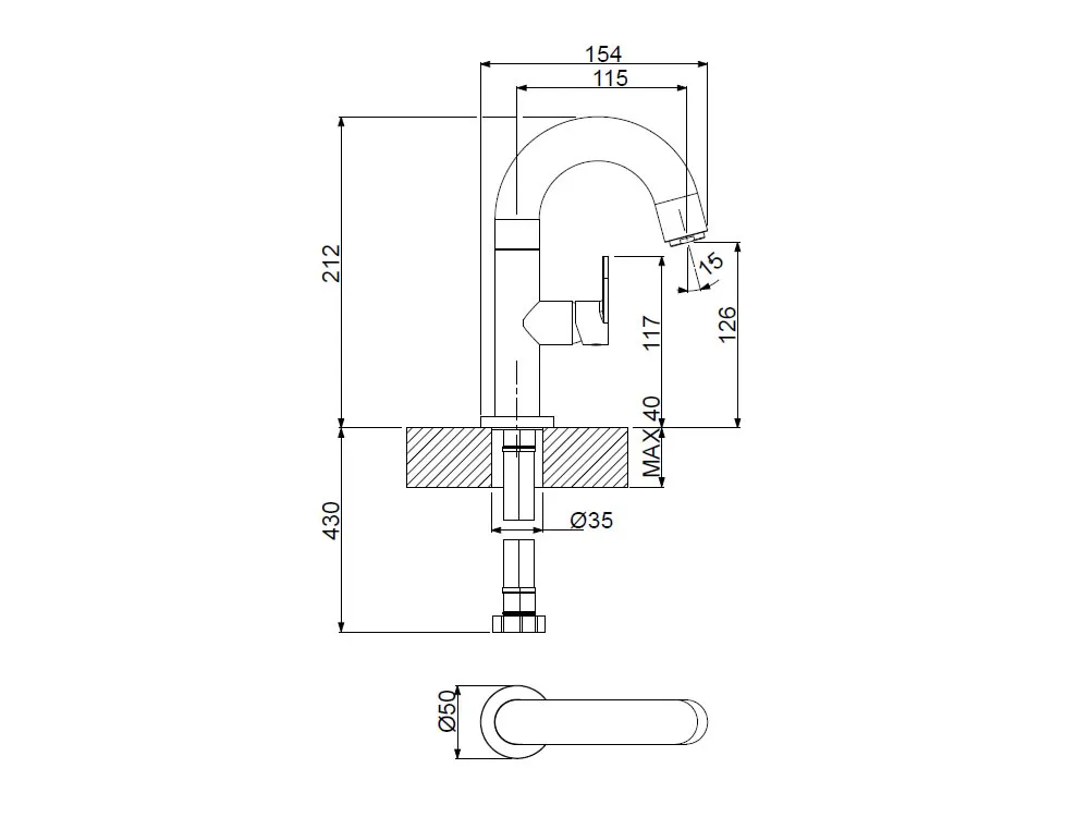 Μπαταρία Νιπτήρα Armando Vicario Slim Rusty Black 500010-424. Τοποθέτηση στον Νιπτήρα, συνοδεύεται με Βαλβίδα Pop-Up.