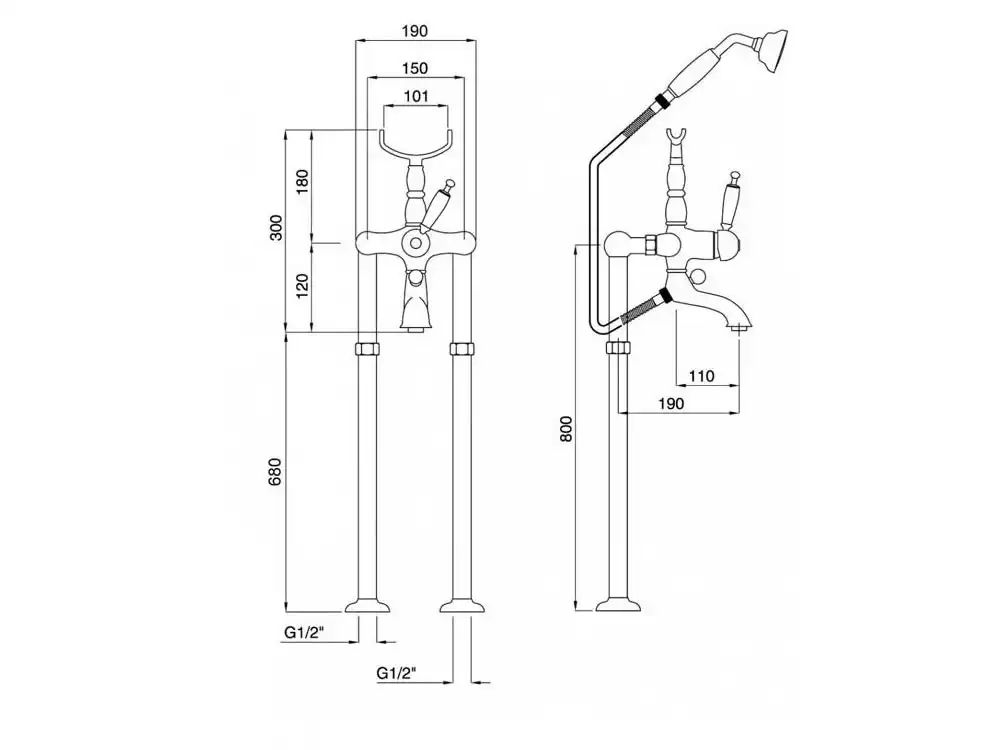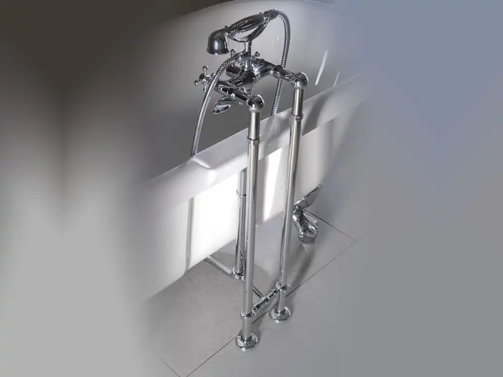 Μπαταρία Λουτρού Bugnatese Oxford Chrome 19642-6300-100.Τοποθέτηση στο δάπεδο. Συμπεριλαμβάνεται στήριγμα τηλεφώνου, σπιράλ και τηλέφωνο.