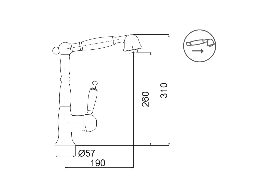 Μπαταρία Κουζίνας Bugnatese Oxford 6388-220 Bronze. Με υψηλό περιστρεφόμενο ρουξούνι και Συρόμενο Ντους.