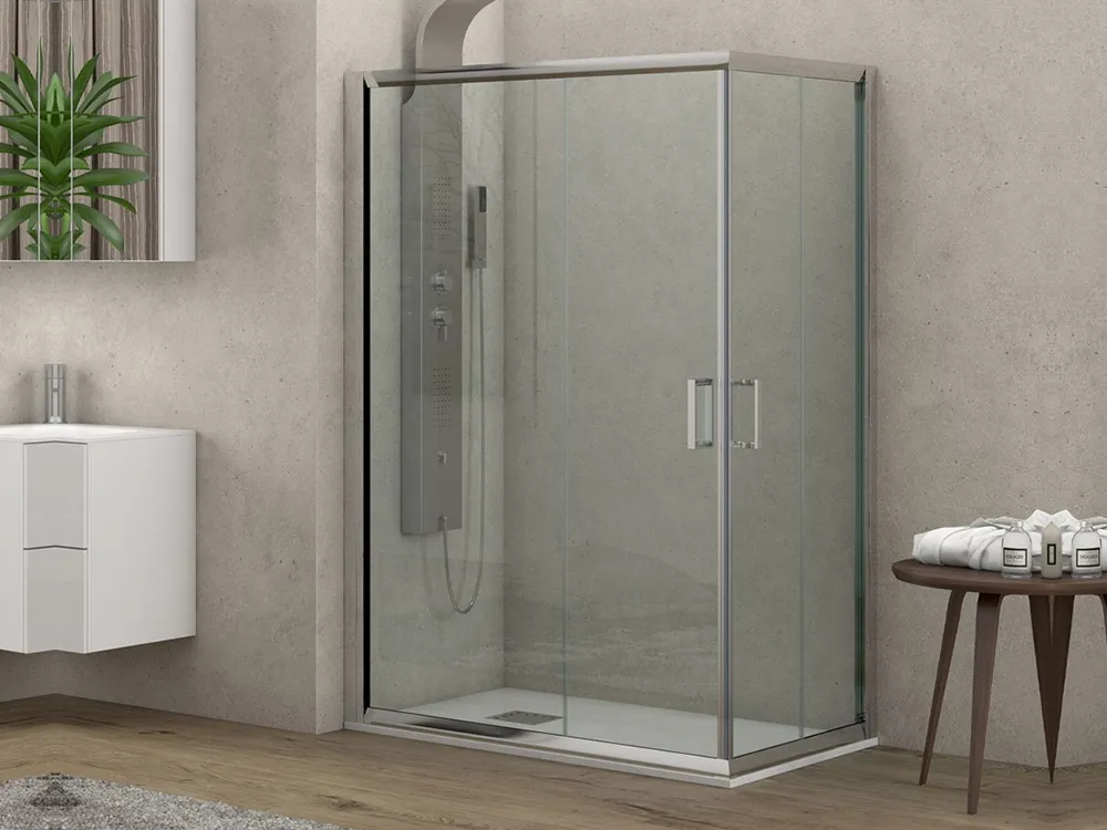Ορθογώνια καμπίνα ντουζιέρας με κρύσταλλο Διαφανές ασφαλείας Car 100 REC CL 100 x 80 cm με 2 Συρόμενες Πόρτες και 2 σταθερό φύλλα.