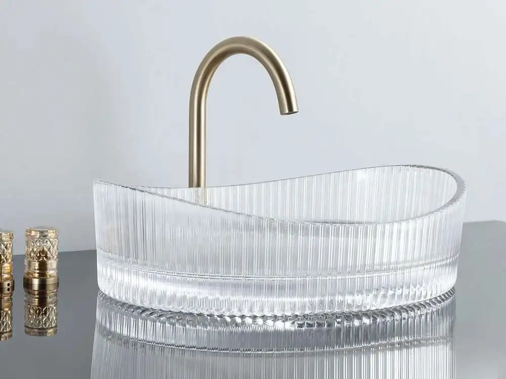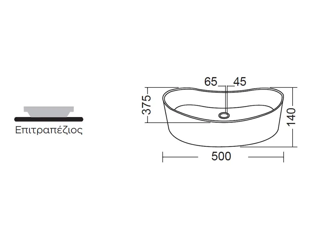 Γυάλινος νιπτήρας μπάνιου Cavo VL-1150-000 50x37cm. Τοποθέτηση σαν Επιτραπέζιος σε πάγκους Κτιστούς η Ξύλινους, συνδυάζεται με βρύσες επιτραπέζιες η επίτοιχες.