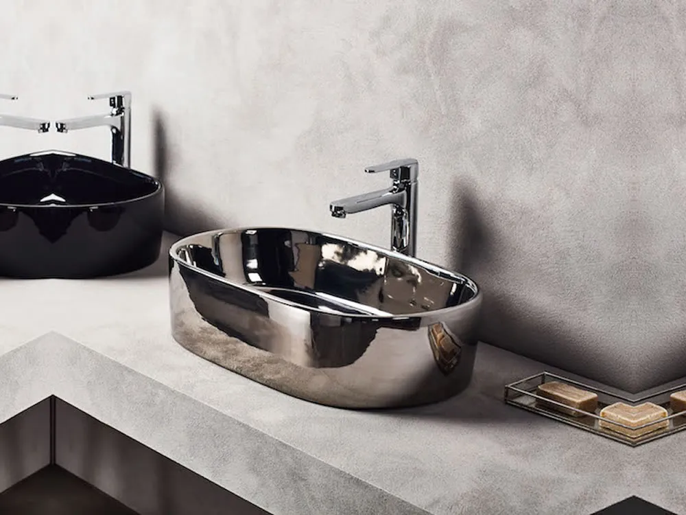 Επιτραπέζιος νιπτήρας μπάνιου Corona 55 x 35 cm Silver χωρίς υπερχείλιση. Συνδυάζεται με Επιτραπέζια η Επίτοιχη μπαταρία Νιπτήρα.
