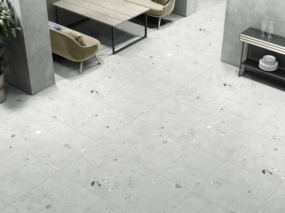 Πορσελανάτα πλακάκια δαπέδου Τεχνογρανίτη Dacite Bianco 60x60cm με Matt επιφάνεια. Κατάλληλα για επίστρωση δαπέδων Εσωτερικών η Εξωτερικών χώρων.