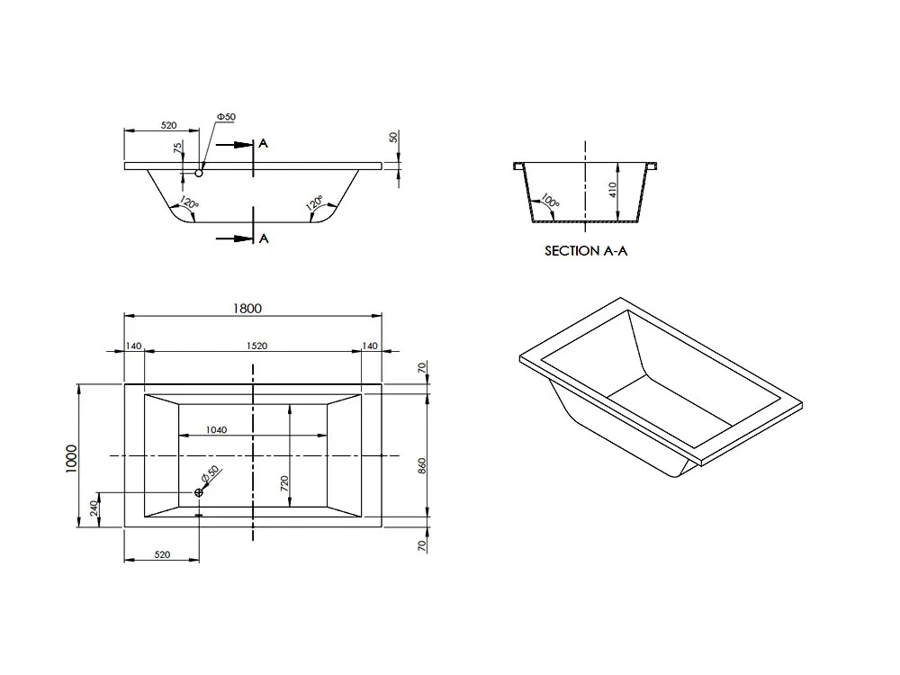 Μπανιέρα ευθύγραμμη Duo Line 180 x 100 cm. Κατασκευασμένη από Ακρυλικό φύλλο Asterite Lucite διατίθεται και με σύστημα Υδρομασάζ.