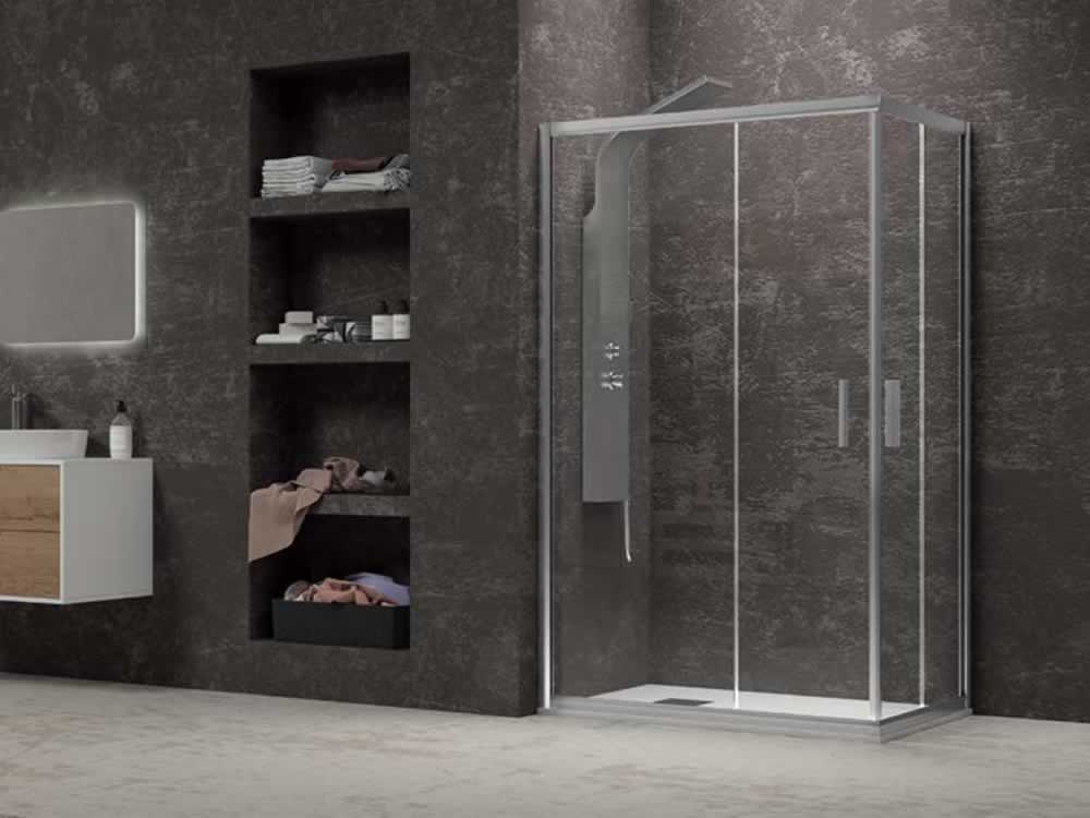 Ορθογώνια καμπίνα ντουζιέρας με Διαφανές κρύσταλλο ασφαλείας Efe 100 Silver 110x100cm με 2 Συρόμενες Πόρτες και 2 Σταθερά φύλλα.