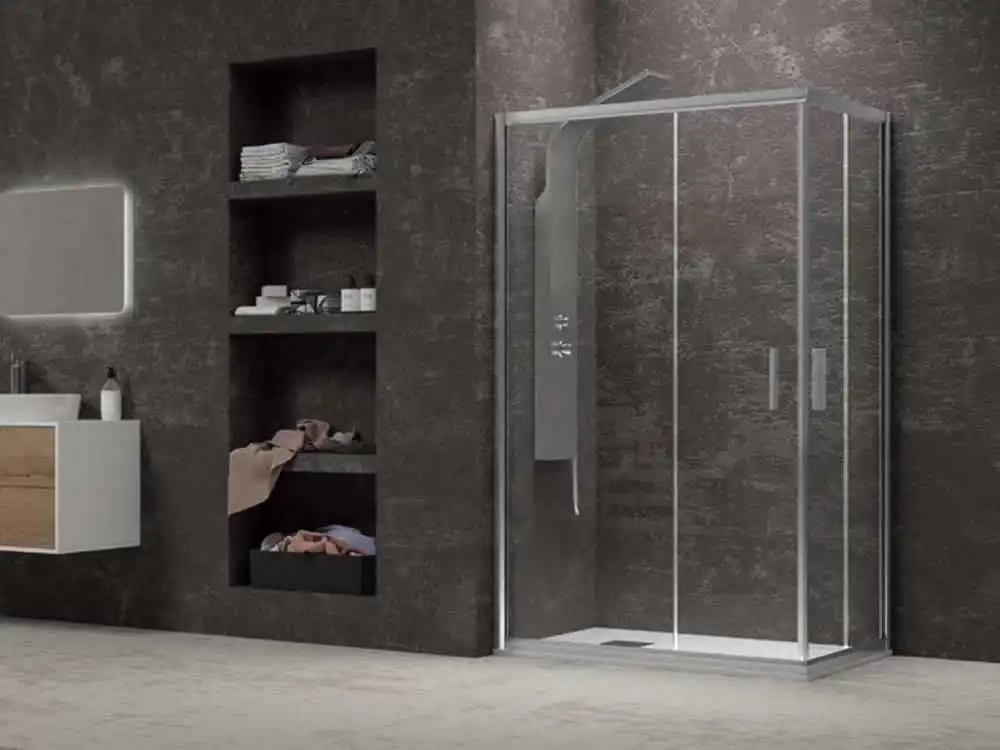 Ορθογώνια καμπίνα ντουζιέρας με Διαφανές κρύσταλλο ασφαλείας Efe 100 Silver 130x120cm με 2 Συρόμενες Πόρτες και 2 Σταθερά φύλλα.