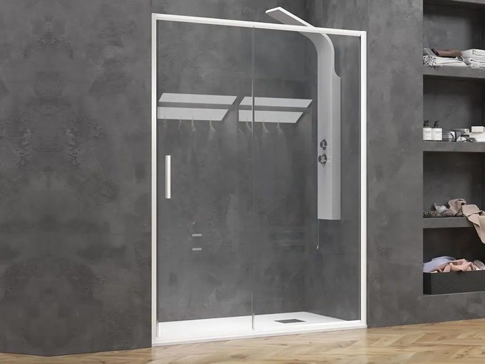 Καμπίνα ντουζιέρας από Τοίχο σε Τοίχο με Διαφανές Κρύσταλλο ασφαλείας Efe 400 CL White Matt 100 cm. Με 1 Συρόμενο και 1 Σταθερό φύλλο.
