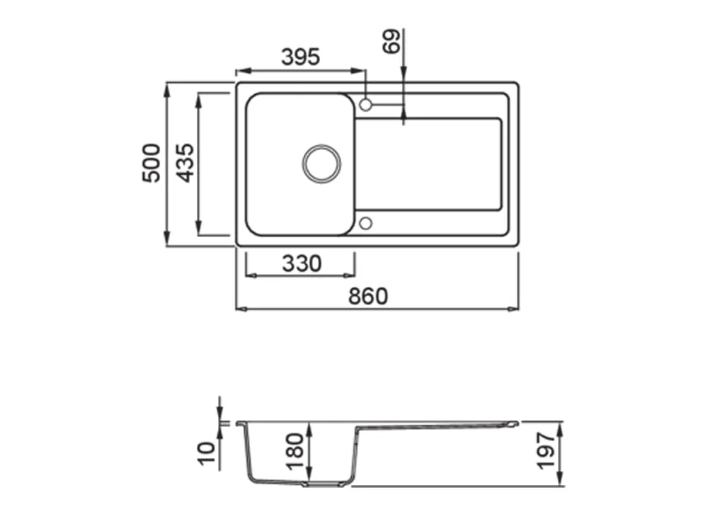 Νεροχύτης Κουζίνας Elleci Life 400 86 x 50 cm σε απόχρωση Black. Κατασκευή από υλικό Granitek με αντοχή στα χτυπήματα.