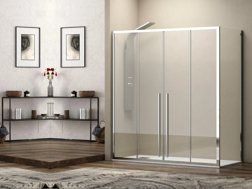 Ορθογώνια καμπίνα ντουζιέρας με Διαφανές κρύσταλλο ασφαλείας Elysium 600 REC 200 x 80 cm με 2 Συρόμενες Πόρτες και 1 Πλαινό Σταθερό φύλλο.