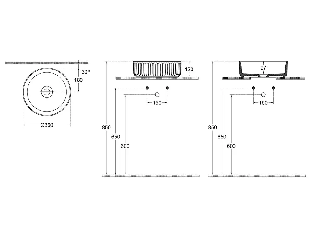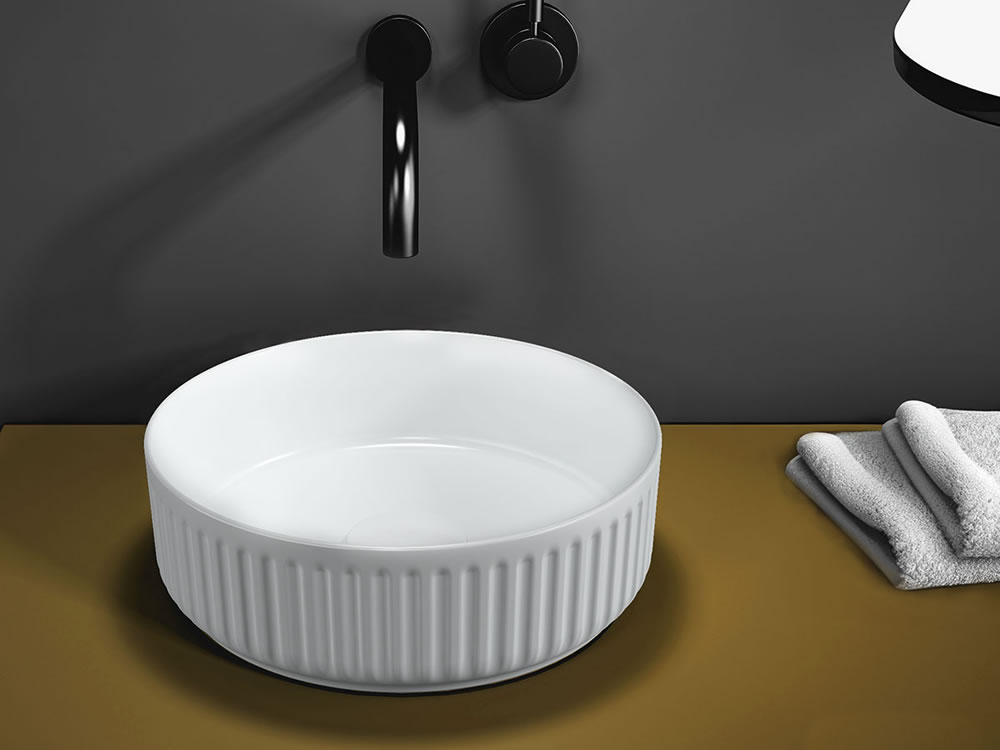 Επιτραπέζιος νιπτήρας μπάνιου Etna-S 33136-300 White 36x36cm. Συνδυάζεται με Επιτραπέζιες η Επίτοιχες μπαταρίες Νιπτήρα.