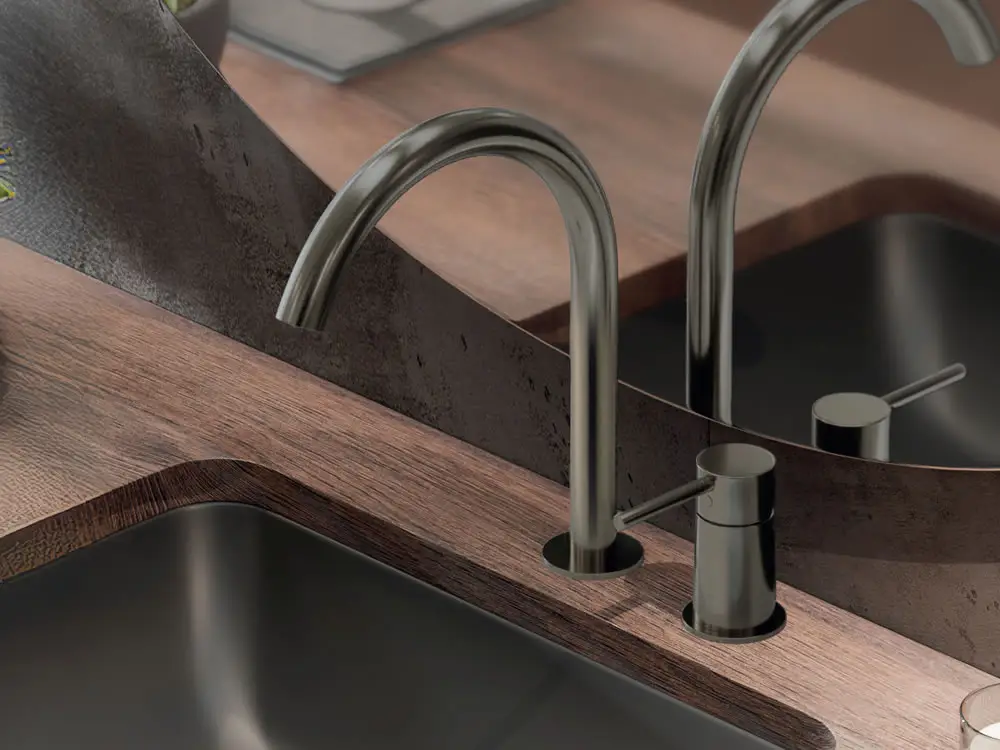 Μπαταρία Νιπτήρα Eurorama Black Brushed R6830-R5309-410. Τοποθέτηση στον πάγκο χτιστό η ξύλινο. Αποτελείται από 1 Ρουξούνι και 1 μίκτη.