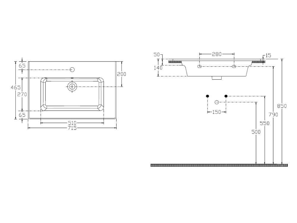 Επιτραπέζιος νιπτήρας μπάνιου από Υαλώδη πορσελάνη Flat 36070-300 71,5 x 46,5 cm.