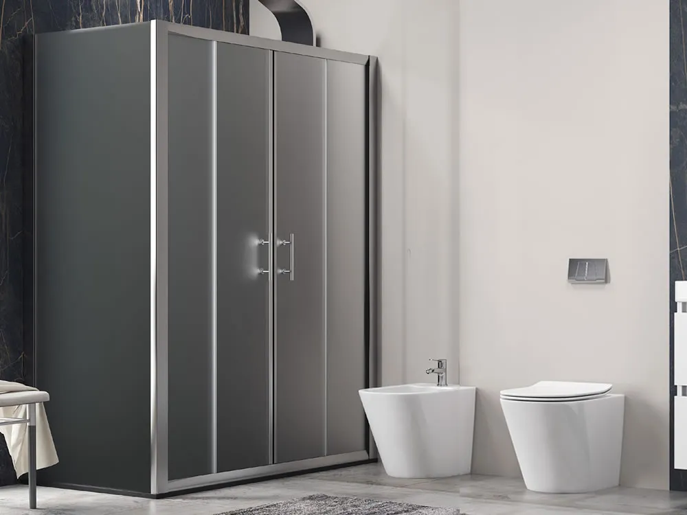 Ορθογώνια καμπίνα ντουζιέρας με Διαφανές κρύσταλλο ασφαλείας Flora 600 REC FR 150 x 90 cm Frost με 2 Συρόμενες Πόρτες και 1 Σταθερό πλαινό φύλλο.