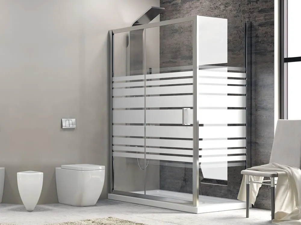 Ορθογώνια καμπίνα ντουζιέρας με κρύσταλλο Σεριγραφάτο ασφαλείας Flora N-500 REC LN 110 x 90 cm με 1 Συρόμενη Πόρτα και 1 πλαινό σταθερό φύλλο.
