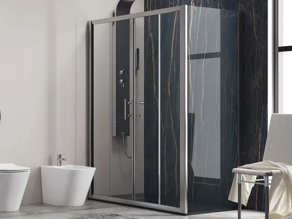 Ορθογώνια καμπίνα ντουζιέρας με Διαφανές κρύσταλλο ασφαλείας Flora N-600 REC 180 x 80 cm Διαφανής με 2 Συρόμενες Πόρτες και 1 Σταθερό πλαϊνό φύλλο.