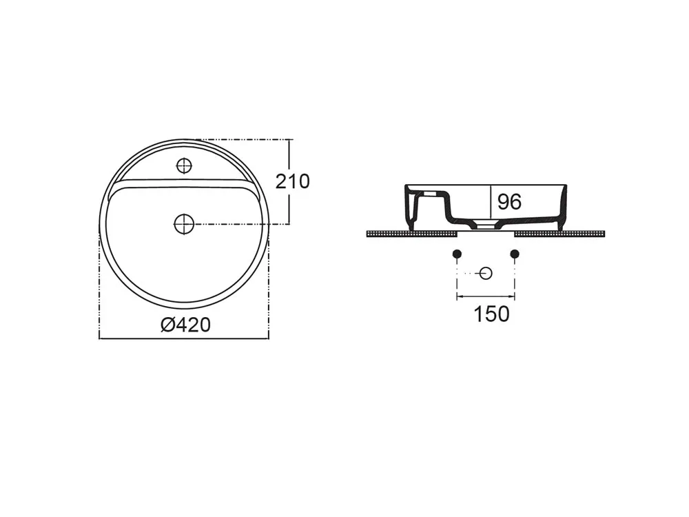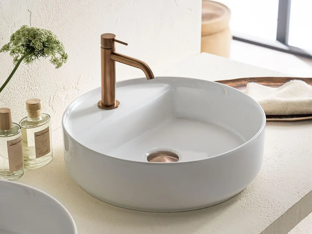 Επιτραπέζιος νιπτήρας μπάνιου από Υαλώδη πορσελάνη Focus 33042-300 42 x 42 cm. Συνδυάζεται με Επικαθήμενες μπαταρίες Νιπτήρα.