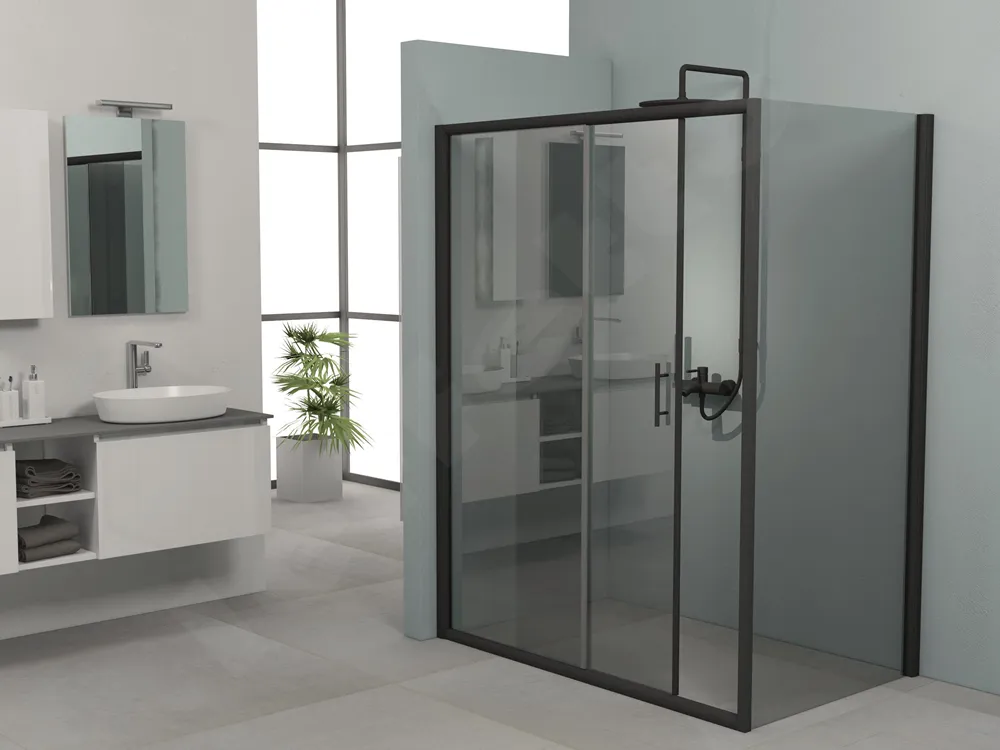 Ορθογώνια καμπίνα ντουζιέρας με Διαφανές κρύσταλλο ασφαλείας Fred 500 CL 130 x 80 cm Black Matt με 1 Συρόμενη Πόρτα και 1 Σταθερό πλαινό φύλλο.