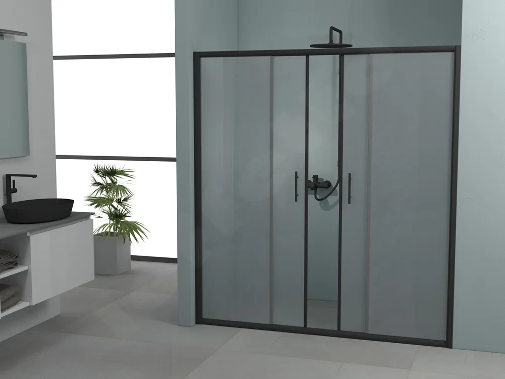 Καμπίνα ντουζιέρας από Τοίχο σε Τοίχο με Frost Κρύσταλλο ασφαλείας Fred 601 FR 180 cm Black Matt. Με 2 Συρόμενα και 2 Σταθερά φύλλα.