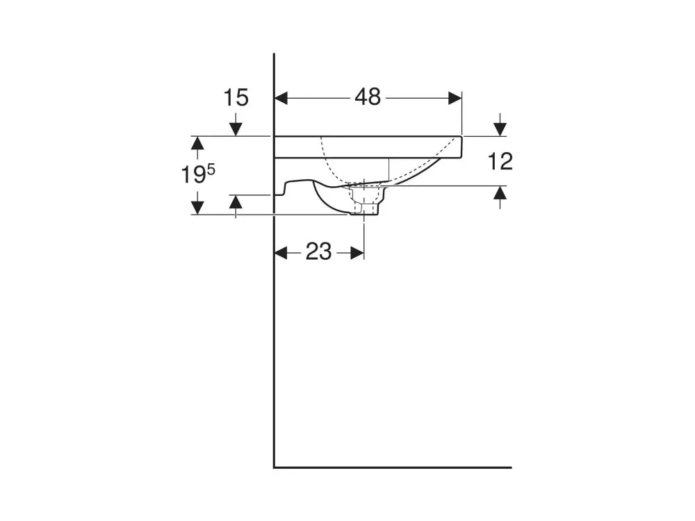 Επιτoίχιος νιπτήρας μπάνιου από Υαλώδη πορσελάνη Geberit Acanto 500630 75 x 48 cm με κρυφή υπερχείλιση. Κατάλληλος για τοποθέτηση σε έπιπλα η επιτοίχια..
