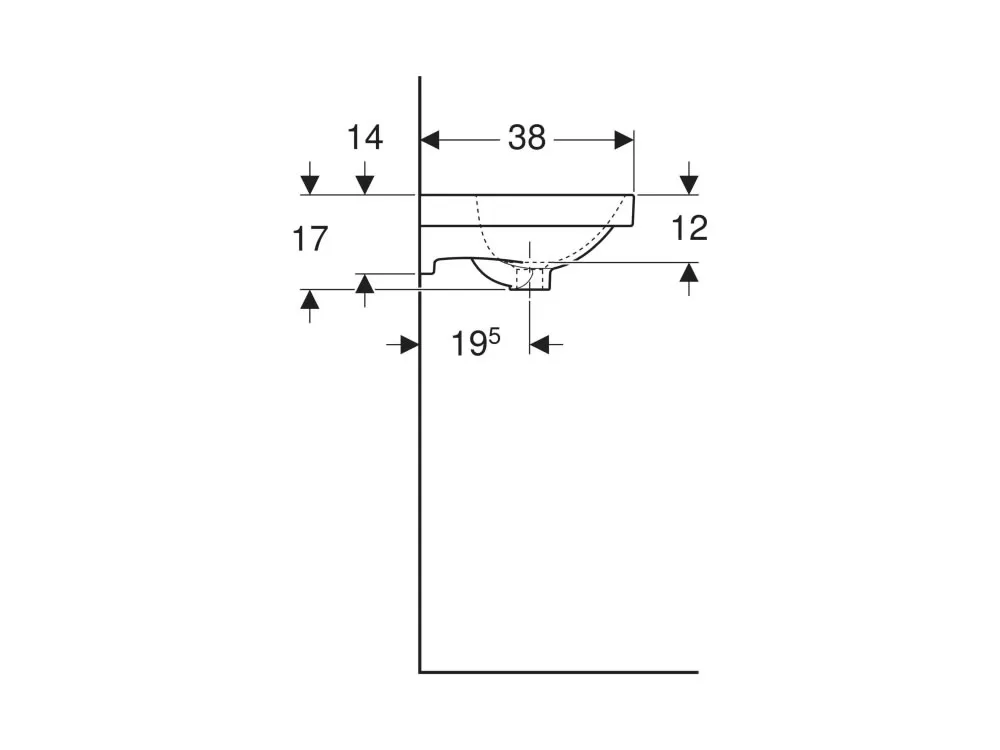 Επιτoίχιος νιπτήρας μπάνιου από Υαλώδη πορσελάνη Geberit Acanto 500636 45 x 39 cm. Κατάλληλος για μικρά μπάνια.