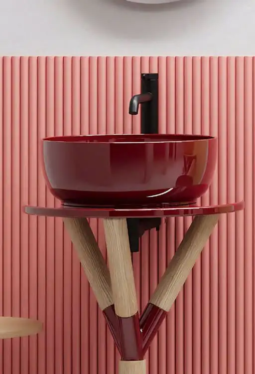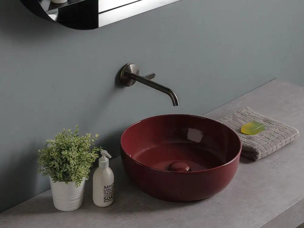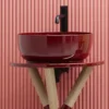 Επιτραπέζιος νιπτήρας μπάνιου Glam Glossy Cherry 1807-830 39x39cm, χωρίς υπερχείλιση. Συνδυάζεται με επιτραπέζιες η επίτοιχες μπαταρίες νιπτήρα.