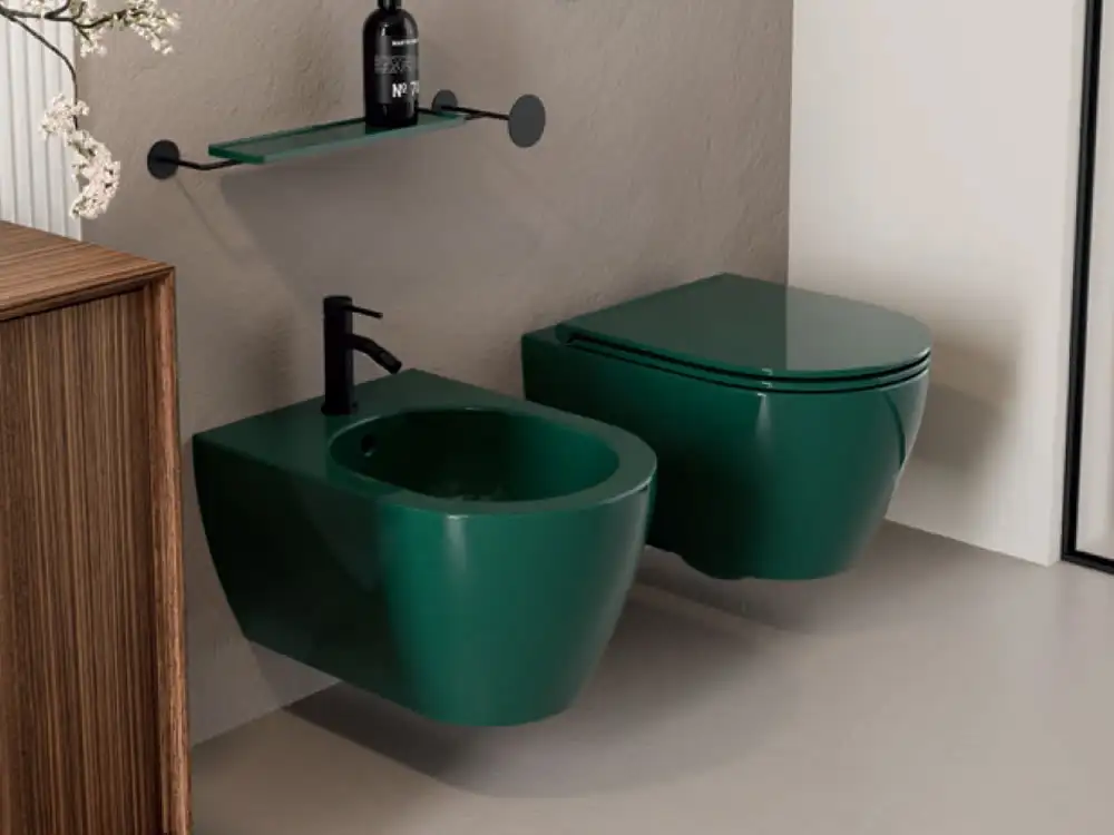 Κρεμαστή λεκάνη WC Τουαλέτας Glam Twist Glossy Musk 50 cm από Υαλώδη πορσελάνη. Με κάλυμμα Slim Soft Close. Συνδυάζεται με εντοιχιζόμενο καζάνι.