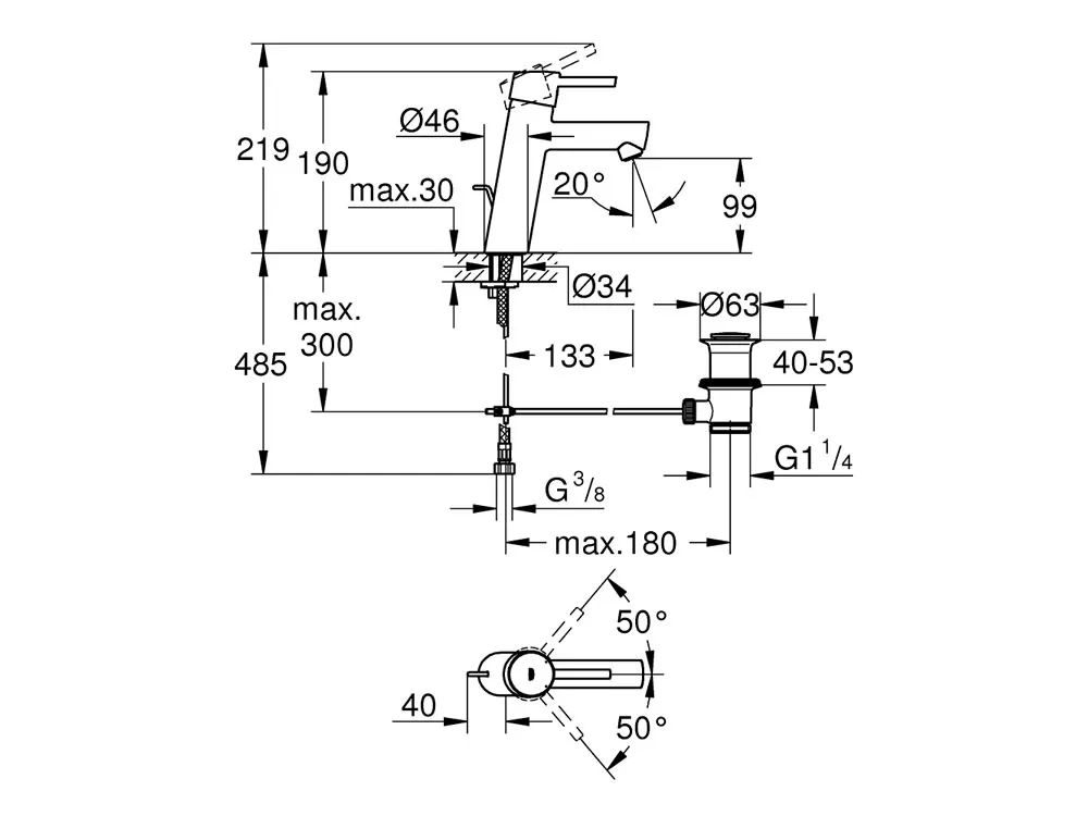 Μπαταρία Νιπτήρα επικαθήμενη Grohe Concetto 23450001 Chrome. Κατάλληλη για όλους τους Νιπτήρες με οπή εγκατάστασης.