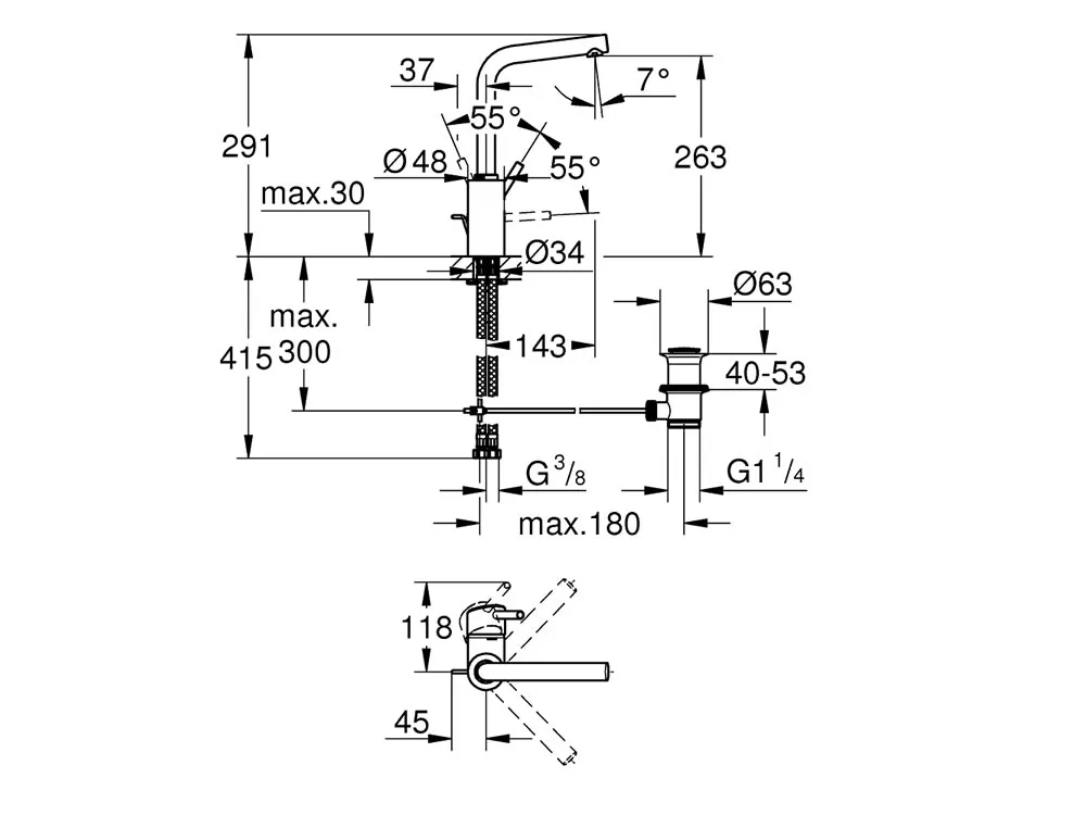 Μπαταρία Νιπτήρα επικαθήμενη Grohe Concetto 23739002 Chrome. Κατάλληλη για όλους τους Νιπτήρες με οπή εγκατάστασης.