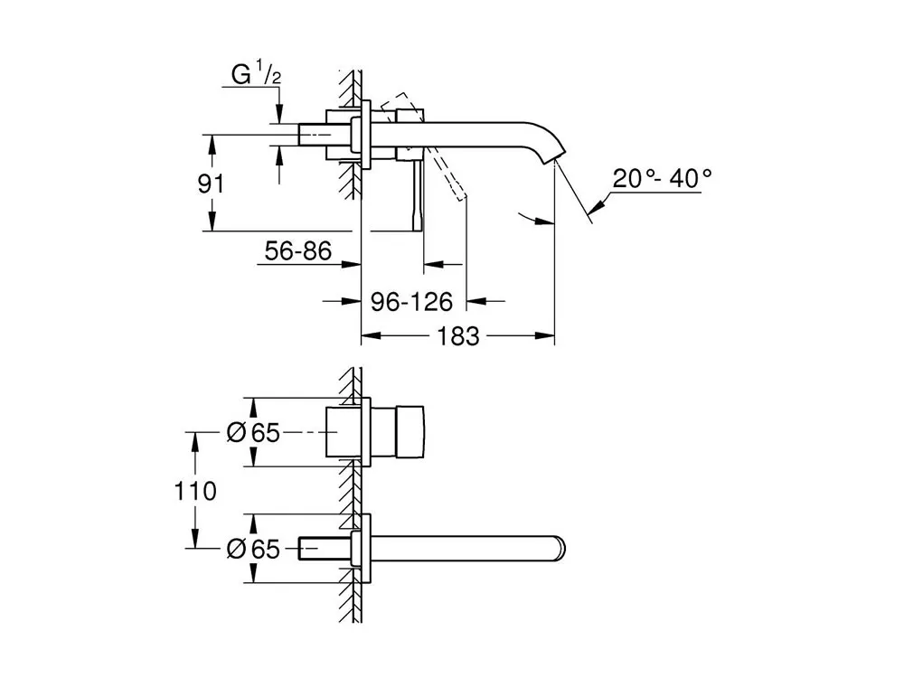 Εξωτερικό μέρος μπαταρίας νιπτήρα Grohe Essence 29192AO1 Hard Graphite. Τοποθέτηση στον Τοίχο. Κατάλληλη για όλους τους επιτραπέζιους Νιπτήρες.