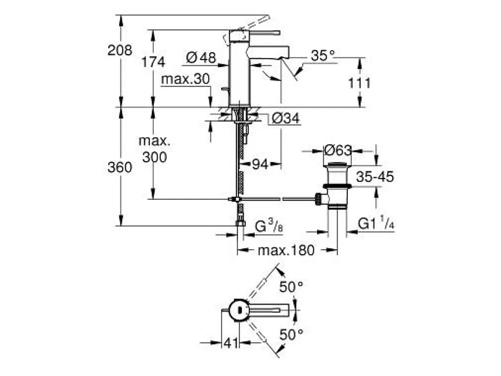 Μπαταρία Νιπτήρα επικαθήμενη Grohe Essense 24175001 Chrome. Τοποθέτηση στον Νιπτήρα. Κατάλληλη για όλους τους Νιπτήρες με οπή εγκατάστασης