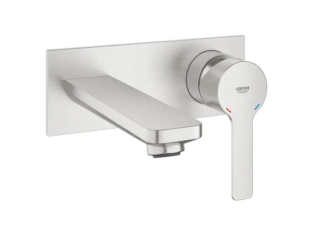 Μπαταρία Νιπτήρα επιτοίχια 2 οπών Grohe Lineare 19409DC1 Supersteel. Τοποθέτηση στον τοίχο. Κατάλληλη για συνδυασμό με επιτραπέζιους νιπτήρες.