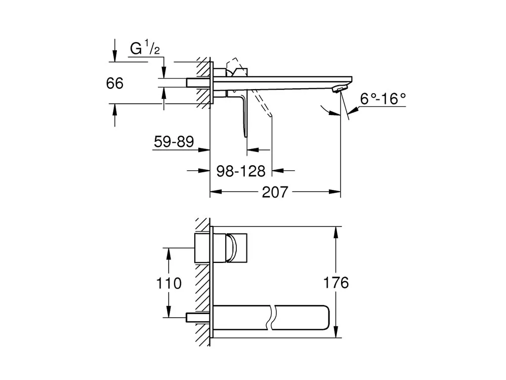 Μπαταρία Νιπτήρα επιτοίχια 2 οπών Grohe Lineare 23444AL1 Hard Graphite Brushed. Τοποθέτηση στον τοίχο. Κατάλληλη για συνδυασμό με επιτραπέζιους νιπτήρες.