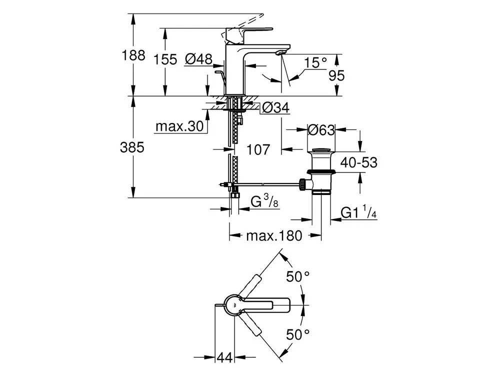 Μπαταρία Νιπτήρα επικαθήμενη Grohe Lineare 32109001 Chrome. Τοποθέτηση στον Νιπτήρα. Κατάλληλη για όλους τους Νιπτήρες με οπή εγκατάστασης.