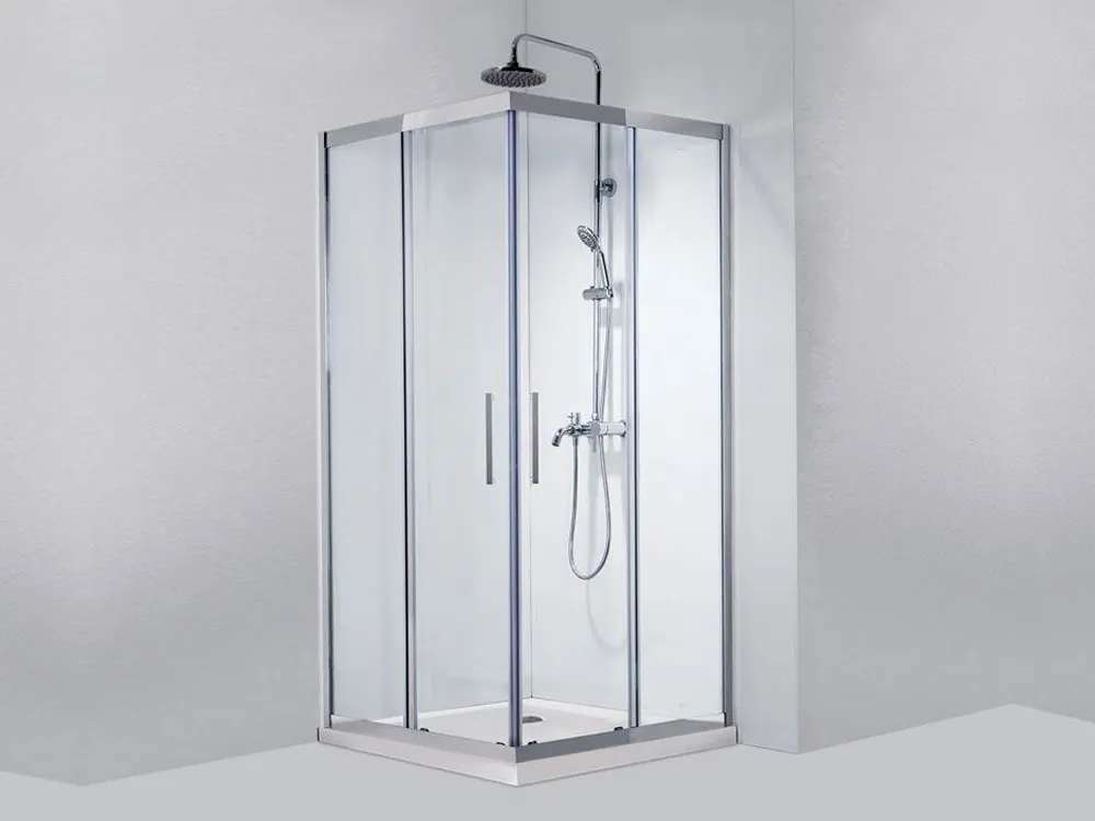 Ορθογώνια καμπίνα ντουζιέρας με Διαφανές κρύσταλλο ασφαλείας Inox 100 REC 90 x 70 cm με 2 Συρόμενες Πόρτες και 2 Σταθερά φύλλα.