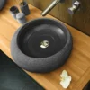 Επιτραπέζιος πέτρινος νιπτήρας μπάνιου Lava-1550 Black 45 x 45 cm. Κατασκευή από φυσικό πέτρωμα με μοναδικότητα σχεδίων και χρωμάτων σε κάθε μοντέλο.