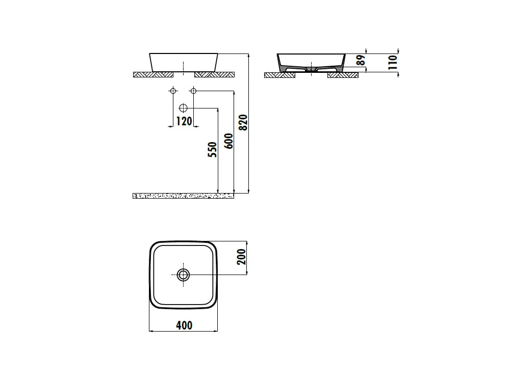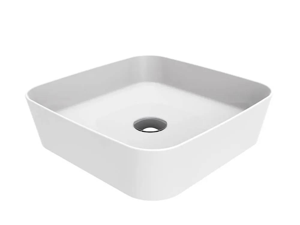 Επιτραπέζιος νιπτήρας μπάνιου Loop LP-040 40 x 40 cm White χωρίς υπερχείλιση. Συνδυάζεται με Επιτραπέζια η Επίτοιχη μπαταρία Νιπτήρα.
