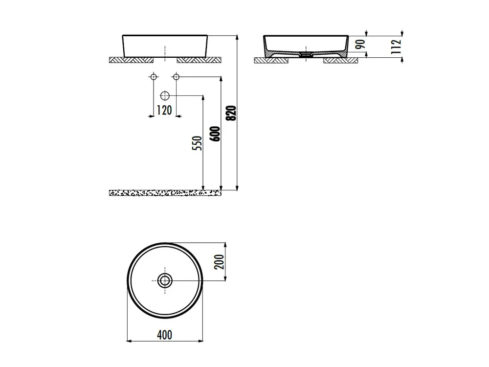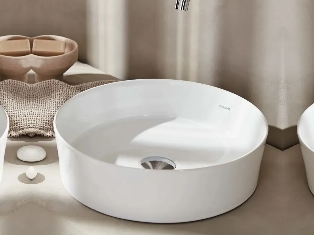 Επιτραπέζιος νιπτήρας μπάνιου Loop LP-140 40 x 40 cm White χωρίς υπερχείλιση. Συνδυάζεται με Επιτραπέζια η Επίτοιχη μπαταρία Νιπτήρα.
