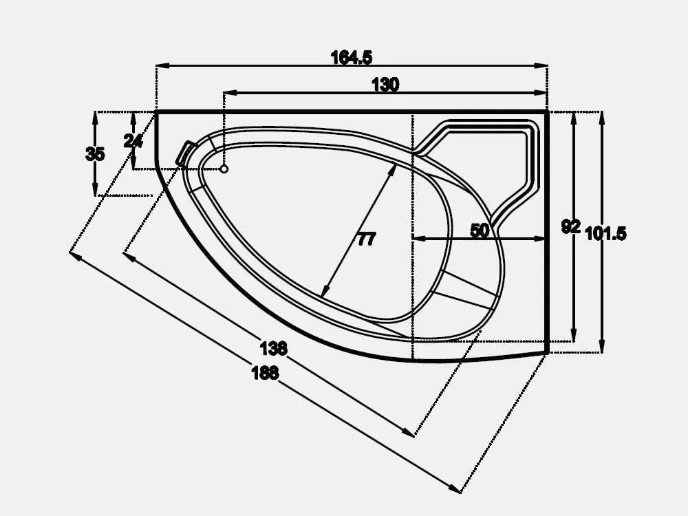 Μπανιέρα Ασύμμετρη γωνιακής τοποθέτησης Lydia 165 x 100 cm για Αριστερή γωνία. Κατασκευασμένη από Ακρυλικό φύλλο Lucite SW.