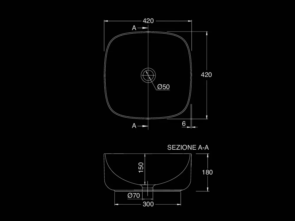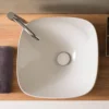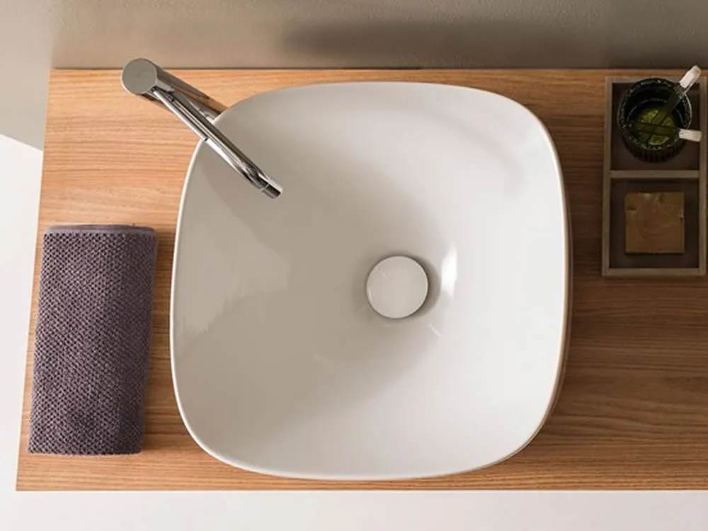 Επιτραπέζιος νιπτήρας μπάνιου από Υαλώδη πορσελάνη Moon 5504-300 42 x 42 cm. Συνδυάζεται με Επιτραπέζιες η Επίτοιχες μπαταρίες Νιπτήρα.