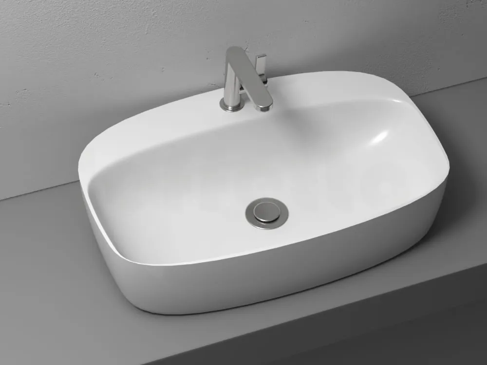 Επιτραπέζιος νιπτήρας μπάνιου Novel 58 x 42 cm White χωρίς υπερχείλιση. Συνδυάζεται με Επικαθήμενη μπαταρία Νιπτήρα.