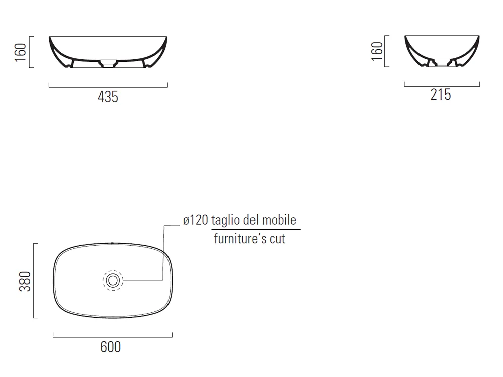 Επιτραπέζιος νιπτήρας μπάνιου Nubes 60 x 38 cm χωρίς υπερχείλιση. Τεχνολογία Extra Glaze με προστασία κατά των αλάτων και των βακτηρίων.