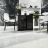 Πορσελανάτα πλακάκια δαπέδου Τεχνογρανίτη Onyx White 60 x 120 cm. Κατάλληλα για επίστρωση δαπέδων Εσωτερικών χώρων. Επιφάνεια Γυαλιστερή.