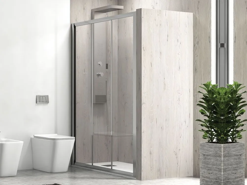 Καμπίνα ντουζιέρας από Τοίχο σε Τοίχο με Διαφανές Κρύσταλλο ασφαλείας Penta 300 CL 150 cm. Με 1 Σταθερό και 2 Συρόμενα φύλλα.