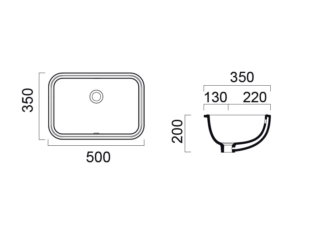 Υποένθετος νιπτήρας μπάνιου από Υαλώδη πορσελάνη Pura 7247-300 50 x 35 cm. Συνδυάζεται με Επικαθήμενες η Επίτοιχες μπαταρίες Νιπτήρα.