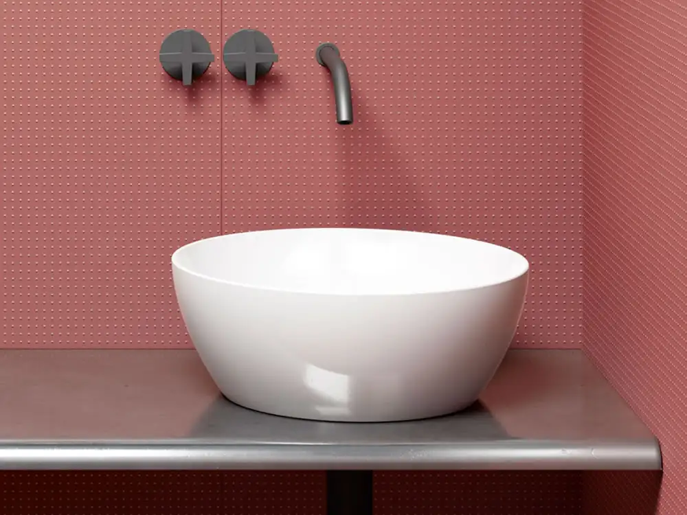 Επιτραπέζιος νιπτήρας μπάνιου Pura 8851-300 42x42cm. Χωρίς υπερχείλιση κατασκευασμένος από Υαλώδη πορσελάνη. Κατάλληλος για τοποθέτηση σε πάγκους.